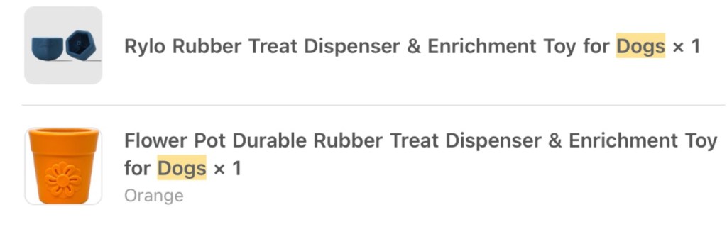 21. And Kongs for frozen treats. Also these – Rylo rubber treat dispenser and the flower pot durable rubber treat dispenser from wooof.co.uk