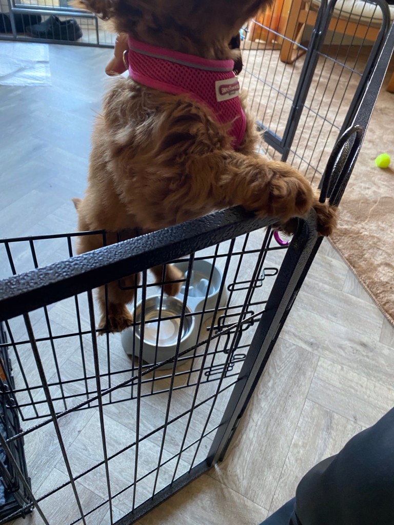 1. This photo is the day after we collected Tallie and shows how she could climb up her pen, even though it was 4 times her size. Within 3 days she was waiting for me on the chair outside her pen when I came down on the morning. We took the pen away as I was sure she must fall on her head when she got on the other side although we never saw this.