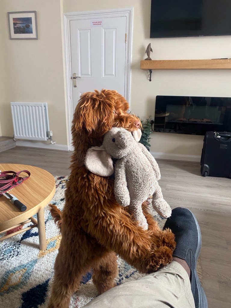3. Her first tug toy – Ellie, who is still in one piece, although it has been played with nearly every morning of last year.
