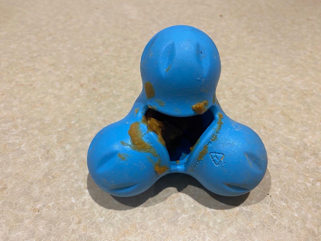 26. I am halfway through Shay Kelly’s second edition of his book “Canine Enrichment”. I have already bought a West Paw Zogofex Tux (p.56), using it with a treat and Amazon packaging to plug it. And dog peanut butter.