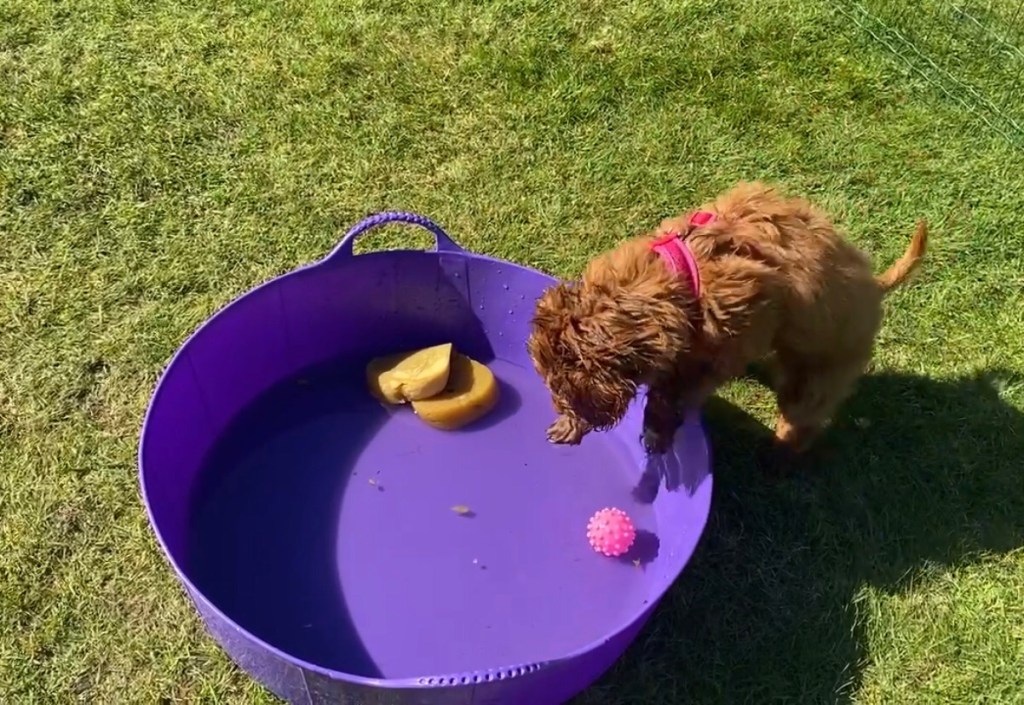 5. Games with water were a large part of our early play, including telly taking the sponge at every opportunity. A training lead was an important part of her early training.
