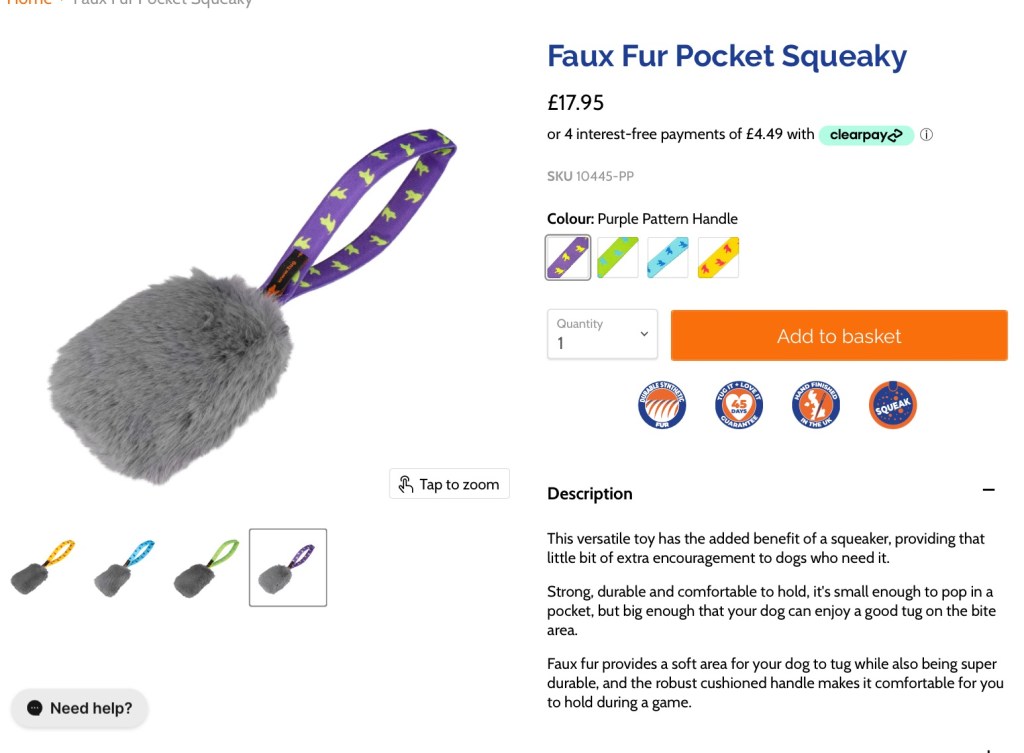 There is also a smaller pocket squeaky which was great for recall on walls before got going with the whistle.