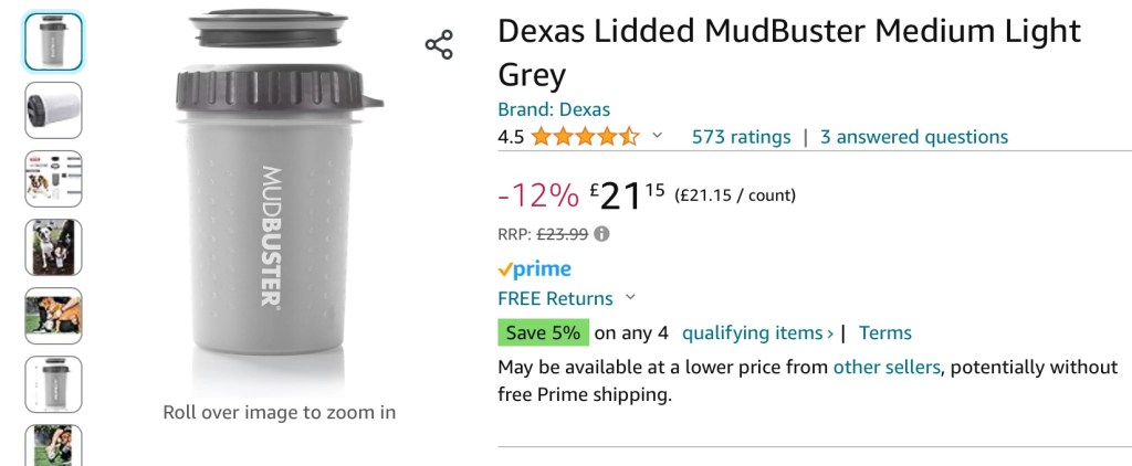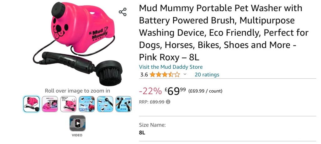 11. Mum Mummy: For a more muddy dog and outside bath times, I splashed out on a mud mummy which has a USB rechargeable brush. I like the fact that you can put warm water in it, so it is much more pleasant than a hosepipe.