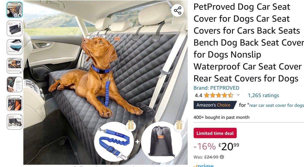 Wish I had known better – Bells for going out; Poo bag holder; Dog drying bag (no good if traps here legs); Dog seat belt holder (better over head rest); Silent dog whistle.