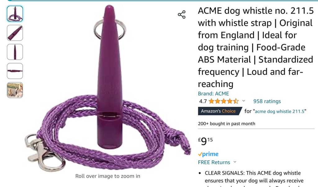 12. Dog Whistle. Our second trainer has explained that there are two gun dog whistles with different sounding noises. I like the pitch of the 211.5 and this make of whistle has been very good.