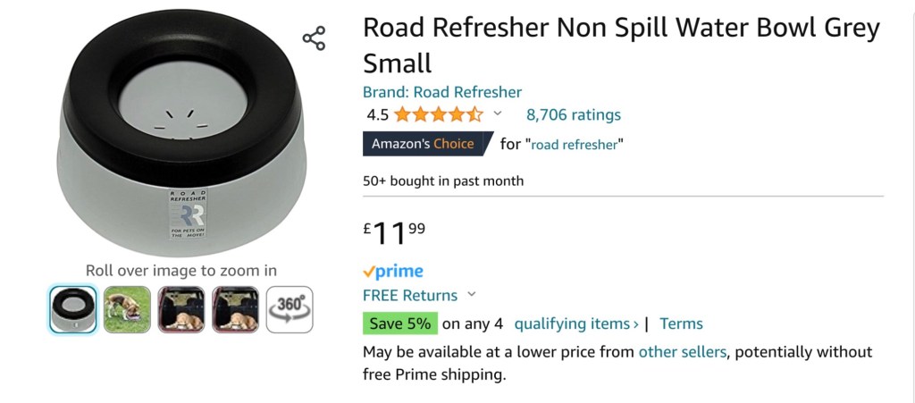 13. Non spill water bowl. As for any Labradoodle, Tallie has whiskers and a beard and a normal water bowl means that she gets quite wet around the mouth. This bowl has been perfect to keep her mouth is dry as possible and it also great for taking in the campervan.