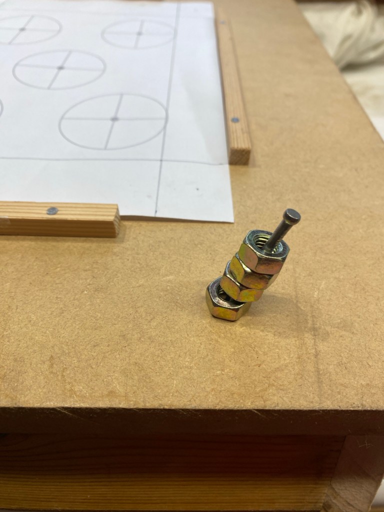 I was already using neodymium magnets, and have taken the idea of embedding them in the wood and using nuts that are cheaper to replace. I used a glue gun and a tack hammer handle to flatten the magnets. There is a nail to pit the nuts on when replacing targets.