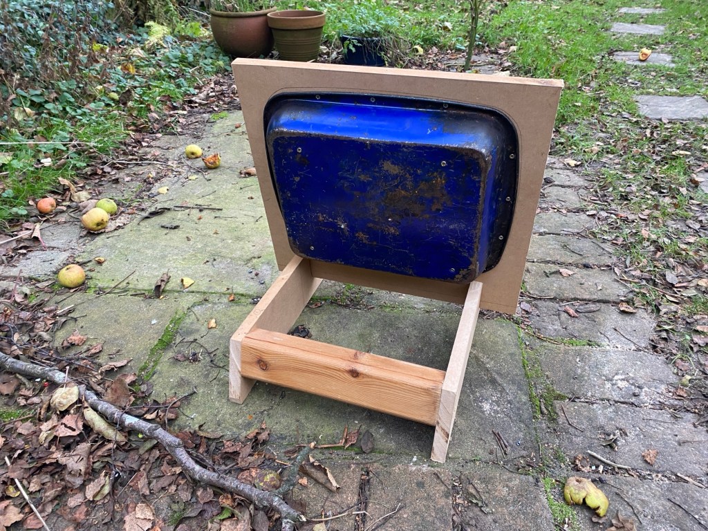 I used the idea of a couple of slots for the legs, but reinforced the stand with a thick piece of wood at the back.